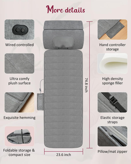 Equipped with 10 powerful massage motors and 5 customizable modes, this mat delivers soothing vibrations to relax after a long day or workout.